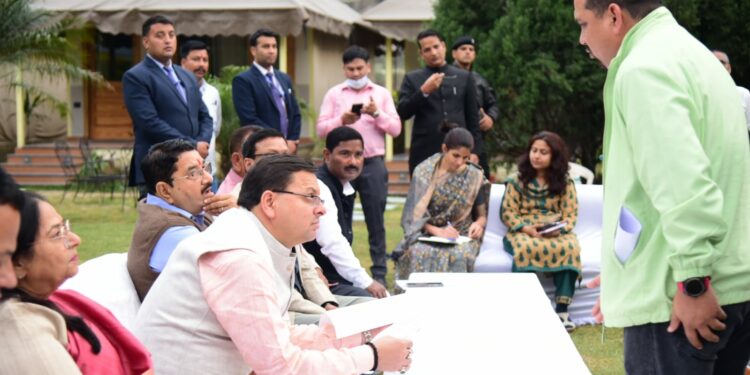 मुख्यमंत्री श्री पुष्कर सिंह धामी ने शुक्रवार को मालदेवता क्षेत्र में भ्रमण के दौरान मालदेवता फार्म में रायपुर क्षेत्र के जनप्रतिनिधियों एवं आमजन से भेंट कर उनकी समस्याएं सुनी। मुख्यमंत्री श्री पुष्कर सिंह धामी ने जनसमस्याओं के त्वरित निराकरण हेतु मौके पर उपस्थित संबंधित अधिकारियों को निर्देशित किया। इस दौरान विधायक उमेश शर्मा काऊ जिलाधिकारी सोनिका, विभिन्न पंचायत प्रतिनिधि एवं अन्य लोग मौजूद।