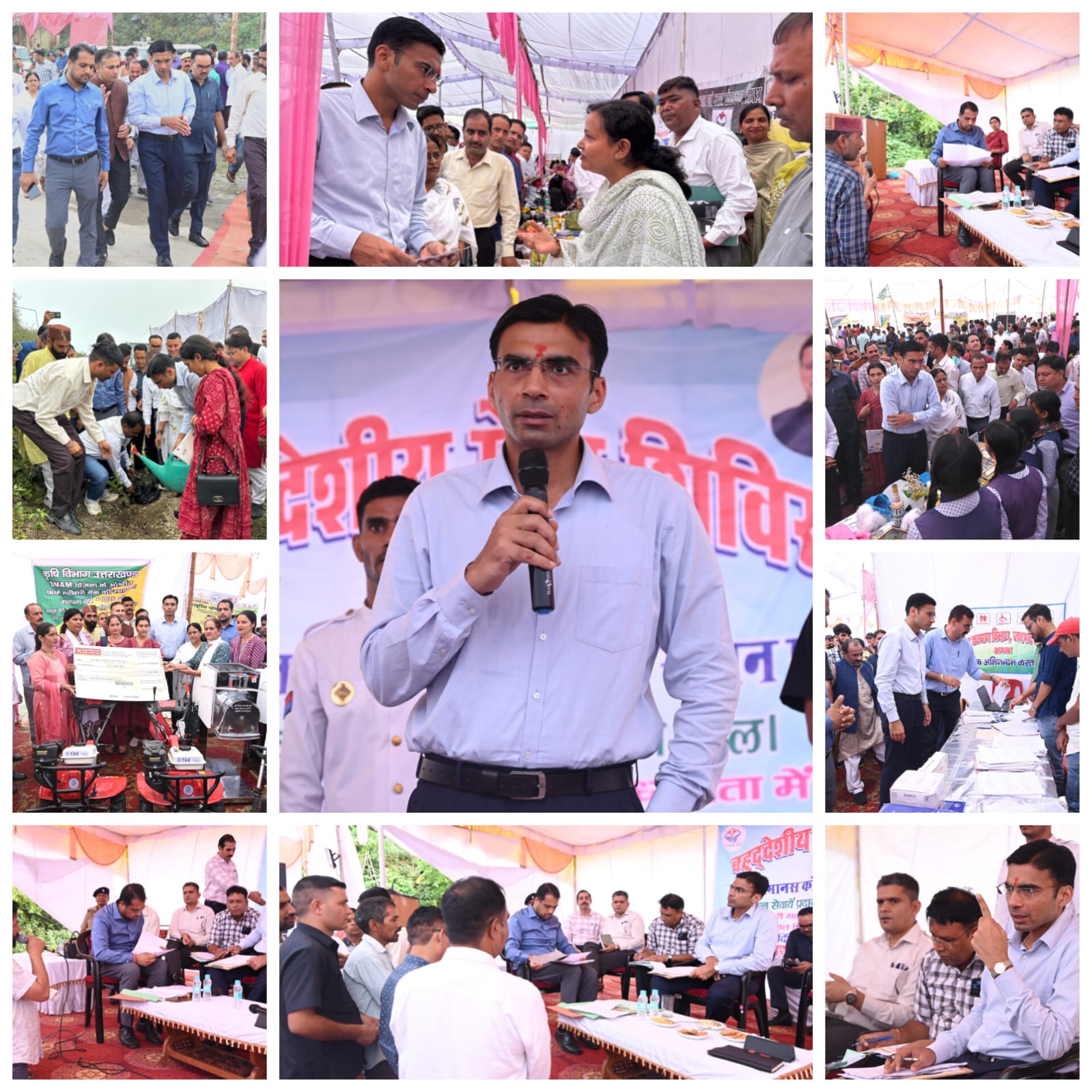 सरकार जनता के द्वार कार्यक्रम के अंतर्गत जन समस्याओं का सुगमता से निराकरण हेतु जिलाधिकारी सविन बंसल की अध्यक्षता में मंगलवार को विकासखंड कालसी के सुदूरवर्ती क्षेत्र उटैल के बैसोगिलानी में वृहद बहुउद्देशीय शिविर आयोजित किया गया। शिविर में ग्रामीणों ने 166 समस्याएं एवं शिकायत दर्ज की। जिलाधिकारी ने सभी समस्याओं को गंभीरता से सुनते हुए 56 शिकायतों का मौके पर ही समाधान किया तथा विभाग एवं शासन स्तर की समस्याओं का प्राथमिकता पर निस्तारण हेतु संबंधित अधिकारियों को निर्देश दिए। शिविर में 442 से अधिक लोगों की निःशुल्क स्वास्थ्य जांच, 25 आयुष्मान कार्ड, 10 दिव्यांग, 15 आधार कार्ड एवं अन्य प्रमाण पत्र मौके पर निर्गत करने के साथ ही क्षेत्रवासियों को जनकल्याणकारी योजनाओं की जानकारी भी दी गई। इस दौरान जिलाधिकारी ने शिविर में लगे स्टॉलों का निरीक्षण भी किया और जनता से विभागीय योजनाओं का लाभ उठाने का आवाहन किया।