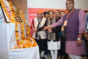 देहरादून, 11 फरवरी। प्रदेश के कृषि एवं कृषक कल्याण मंत्री गणेश जोशी ने शनिवार को देहरादून में एक निजी होटल में आयोजित दो दिवसीय भारतीय जनता पार्टी महानगर देहरादून की जिला कार्यसमिति की बैठक का पूर्व मुख्यमंत्री रमेश पोखरियाल निशंक के साथ शुभारंभ किया। इस अवसर पर मंत्री गणेश जोशी ने सांसद रमेश पोखरियाल निशंक के साथ मोदी सरकार की जनकल्याणकारी योजनाओं को दर्शाती प्रदर्शनी का शुभारंभ कर प्रदर्शनियों का अवलोकन भी किया।