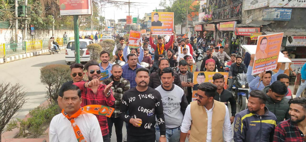 आज दिनांक 22 फरवरी 2023 को एक भव्य बाइक रैली का कार्यक्रम आयोजित किया गया जिसमें माननीय मुख्यमंत्री पुष्कर सिंह धामी जी के द्वारा उत्तराखंड प्रतियोगी परीक्षा अध्यादेश 2023 लागू होने पर भारतीय जनता युवा मोर्चा अंबेडकर मंडल द्वारा बाइक रैली का आयोजन किया गया जिसको उत्तराखंड सरकार की कैबिनेट मंत्री श्रीमती रेखा आर्य जी के द्वारा हरी झंडी दिखाते हुए माननीय मुख्यमंत्री श्री पुष्कर सिंह धामी जी का धन्यवाद किया गया और उन्होंने कहा हमारे प्रदेश के मुख्यमंत्री श्री पुष्कर सिंह धामी जी युवाओं के प्रति उनके भविष्य की चिंता कर रहे हैं इसीलिए उन्होंने नकल विरोधियों के लिए कठोर कानून लेकर आए हैं कि कोई भी आने वाले समय में इस प्रकार की अपराधिक गतिविधियां ना कर सके,उन्होंने विपक्ष पर जवाबी हमला करते हुए कहा है कि विगत पिछले दिनों में जो युवाओं के द्वारा गतिविधियां हो रही हैं उसमें विपक्ष युवाओं गुमराह कर रहा है उत्तराखंड प्रदेश का युवा शांत स्वभाव का है और उत्तराखंड के युवा मुख्यमंत्री जी प्रतियोगिता परीक्षाओं में पारदर्शिता एवं शुचिता को सुनिश्चित करने के लिए यह कानून लेकर आए हैं युवाओं को उन पर पूरा विश्वास है और आज यह जोश जो उत्तराखंड के राजधानी के युवाओं में दिख रहा है वह इस बात का द्योतक है ।