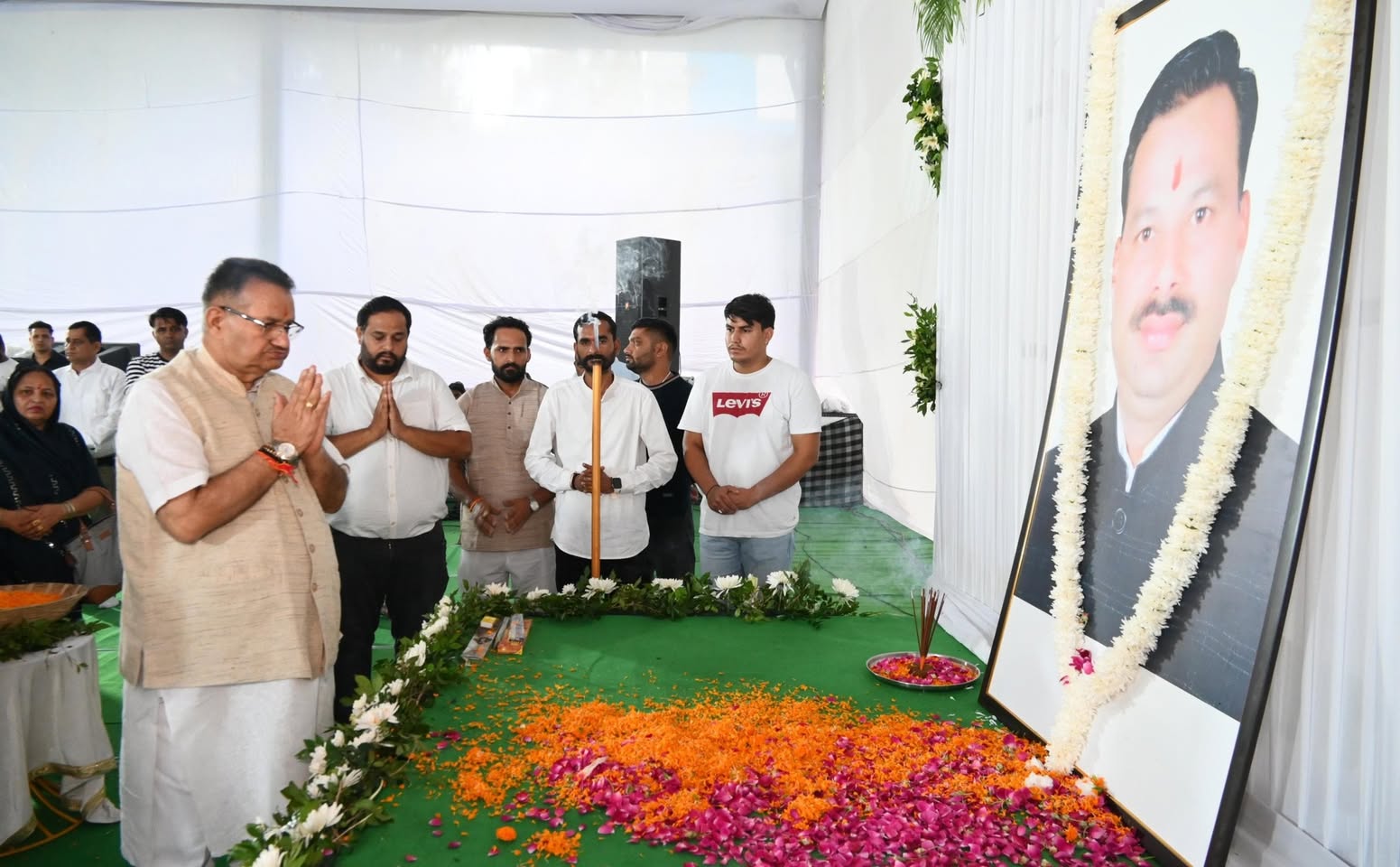 कैबिनेट मंत्री गणेश जोशी ने आज देहरादून के गुनियाल गांव स्थित बहुउद्देशीय भवन में पूर्व जिला पंचायत उपाध्यक्ष दिवंगत दीपक पुंडीर की श्रद्धांजलि सभा में प्रतिभाग किया। इस दौरान कैबिनेट मंत्री जोशी ने दिवंगत दीपक पुंडीर के चित्र पर पुष्पांजलि अर्पित कर उन्हें श्रद्धांजलि दी।