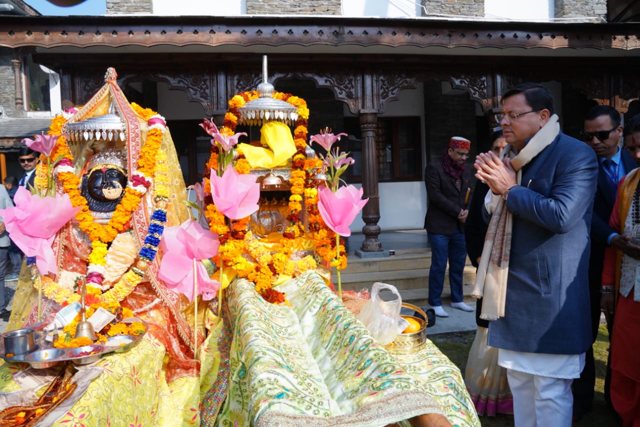 मुख्यमंत्री श्री पुष्कर सिंह धामी ने शुक्रवार को मुख्यमंत्री कैम्प कार्यालय में माँ धारी देवी एवं भगवान श्री नागराजा देव डोली शोभायात्रा 2024 का शुभारंभ किया। उन्होंने देव डोलियों की विधिवत पूजाअर्चना कर सभी राज्यवासियों के सुखसमृद्धि की कामना की। मुख्यमंत्री ने कहा कि देव डोलियों की परंपरा देवभूमि उत्तराखण्ड की संस्कृति का अभिन्न अंग होने के साथ ही हम सभी की अटूट आस्था और विश्वास का प्रतीक भी हैं। आध्यात्मिक महत्व से परिपूर्ण यह परंपरा हम सभी को ईश्वर से जोड़ने का अलौकिक माध्यम है। इस अवसर पर उपाध्यक्ष उत्तराखण्ड संस्कृति साहित्य एवं कला परिषद श्री मधु भट्ट भी उपस्थित थी। आचार्य मधुसूदन जुयाल, राजदीप भट्ट एवं मनोज धस्माना आदि द्वारा मुख्यमंत्री को देव डोलियों की शोभायात्रा के भ्रमण कार्यक्रम की जानकारी भी दी।