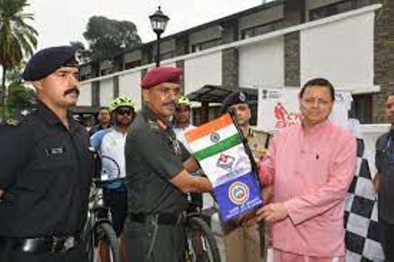 मुख्यमंत्री श्री पुष्कर सिंह धामी ने शुक्रवार को कैंप कार्यालय, मुख्यमंत्री आवास, देहरादून में सामाजिक जागरूकता को बढ़ावा देने हेतु उत्तराखंड भ्रमण में जा रहे निम (छप्ड) के डज्ठ ब्लबसपदह म्गचमकपजपवद दल को फ्लैग ऑफ कर रवाना किया। उल्लेखनीय है केंद्र सरकार द्वारा शुरू की गई ‘वाइब्रेंट विलेज स्कीम’ के अंतर्गत सीमांत गांव के व्यापक विकास और चिन्हित सीमावर्ती गांवों में रहने वाले लोगों के जीवन की गुणवत्ता में सुधार, स्थानीय स्तर पर रोजगार, पर्यटन को बढ़ाने, स्वस्थ भारत अभियान के तहत युवा वर्गों में साहसिक क्रियाकलापों के साथ स्वास्थ्य के प्रति जागरूकता बढ़ाने के उद्देश्य से निम द्वारा उक्त अभियान का आयोजन किया जा रहा है। उक्त अभियान में कुल 06 सदस्य है। यह अभियान प्रदेश के 11 जिलों से गुजरते हुये सम्पन्न होगा। इस आभियान का शुभारंभ जधोंग गांव (टपइतंदज टपससंहम) से होगा। जिसमे कुल लगभग 1064 किलोमीटर की साइक्लिंग की जायेगी। इस अभियान के दौरान गढ़वाल व कुमाऊ दोनों मण्डलों में स्थित गढवाल विश्वविद्यालय, कुमाऊ विश्वविद्यालयों के छात्रों, एवं फैकल्टी मेंबर्स के साथ साहसिक क्रियाकलापों के साथ रोजगार का सृजन ‘‘एक भारत श्रेष्ठ भारत’’ की धारणा के साथ संवाद व परिचर्चा भी सम्मिलित है। इस दौरान कार्यक्रम में कर्नल अंशुमान भदौरिया प्रधानाचार्य निम, मेजर देवल बाजपेयी, उप प्रधानाचार्य निम, श्री राकेश राणा, श्री दीप बहादुर शाही, एवं अन्य लोग मौजूद रहे।aaasxz€a