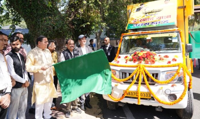 मुख्यमंत्री श्री पुष्कर सिंह धामी ने गुरुवार को मुख्यमंत्री कैम्प कार्यालय में ‘मुख्य सेवक आपके द्वार’ अन्तर्गत ‘ईसंवाद यात्रा उत्तराखण्ड’ वाहन का फ्लैग ऑफ किया। मुख्यमंत्री ने कहा कि प्रचार वाहन के माध्यम से सरकार द्वारा चलाई जा रही विभिन्न जन कल्याणकारी योजनाओं की जानकारी दी जा रही है। इस वाहन को विशेष रूप से आउटडोर वीडियो कॉन्फ्रेंसिंग के लिए तैयार किया गया है और इसका उपयोग दूरदराज के गांवों में भी लोगों से बातचीत करने के लिए किया जाएगा। मुख्यमंत्री वीडियो कांफ्रेंसिंग सुविधा के माध्यम से इस वाहन से दूरदराज के लोगों से जुड़ सकेंगे। मुख्यमंत्री ने कहा कि इस सुविधा से राज्य के लोगों को मुख्यमंत्री कार्यालय के संपर्क करने में भी मदद मिलेगी।
