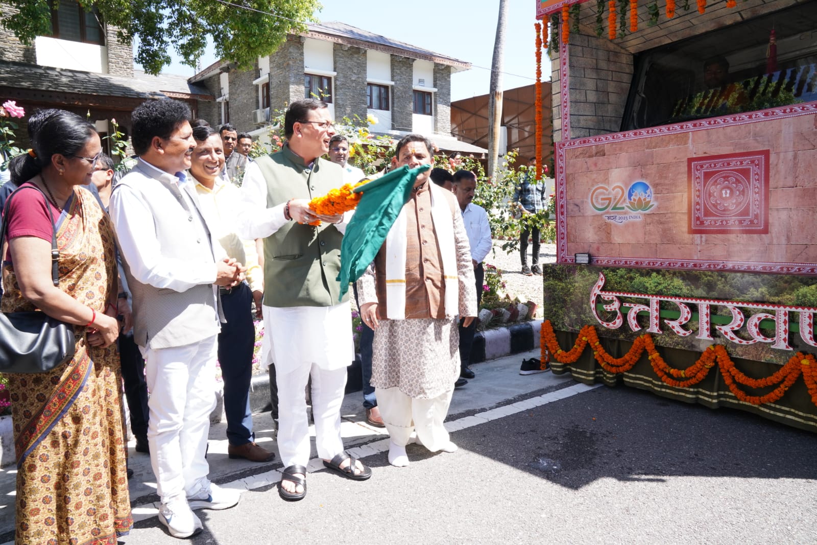 मुख्यमंत्री श्री पुष्कर सिंह धामी ने बुधवार को मुख्यमंत्री आवास से गणतंत्र दिवस परेड-2023 में प्रथम स्थान पर रही उत्तराखण्ड राज्य की झांकी ‘मानसखण्ड’ को प्रदेश के जनपदों/ब्लॉक मुख्यालयों तथा मुख्य स्थानों पर प्रदर्शन हेतु फलैग ऑफ किया। गणतंत्र दिवस परेड-2023 में विभिन्न राज्यों व भारत सरकार के मंत्रालयों की 27 झांकियों में उत्तराखण्ड की मानसखण्ड झांकी को प्रथम स्थान प्राप्त हुआ। कर्त्तव्य पथ पर पहली परेड में उत्तराखण्ड को प्रथम स्थान मिलना एक बड़ी उपलब्धि है। उत्तराखण्ड गठन से अब तक पहली बार राज्य की झांकी को प्रथम स्थान प्राप्त हुआ है। मानसखण्ड झांकी में जागेश्वर मंदिर, कार्बेट नेशनल पार्क, ऐपण आर्ट, योग तथा वनों का समावेश किया गया था। इस उपलब्धि से उत्तराखण्ड की धार्मिक, सांस्कृतिक धरोहर, कला एवं संस्कृति का प्रचार-प्रसार पूरे विश्व में हुआ। 05 अपै्रल, 2023 से 18 मई 2023 तक प्रदेश के ब्लॉक मुख्यालयों एवं मुख्य शहरों में झांकी का प्रदर्शन जनमानस के सम्मुख किया जाएगा। मानसखण्ड झांकी के संबंध में 02 मिनट की वीडियो भी तैयार की गई है। इस शॉर्ट फिल्म का एल.ई.डी. के माध्यम से जन सामान्य हेतु प्रसारण किया जाएगा। समस्त जनपद मुख्यालयों पर जिलाधिकारी के सहयोग से स्थानीय विधायक की उपस्थिति में झांकी से सम्बन्धित कार्यक्रमों का आयोजन किया जाएगा ।