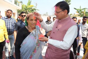 मुख्यमंत्री श्री पुष्कर सिंह धामी ने रविवार को अपने निजी आवास नगला तराई खटीमा पर होली पर्व के अवसर पर अपनी माता जी को गुलाल लगाकर उनका आशीर्वाद लिया। इस दौरान उन्होंने आवास पर पहुंचे लोगो को भी गुलाल लगाकर होली की शुभकामनाएं व बधाई दी।