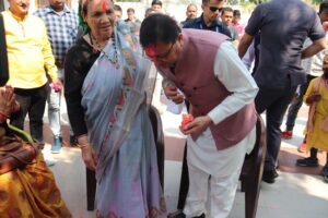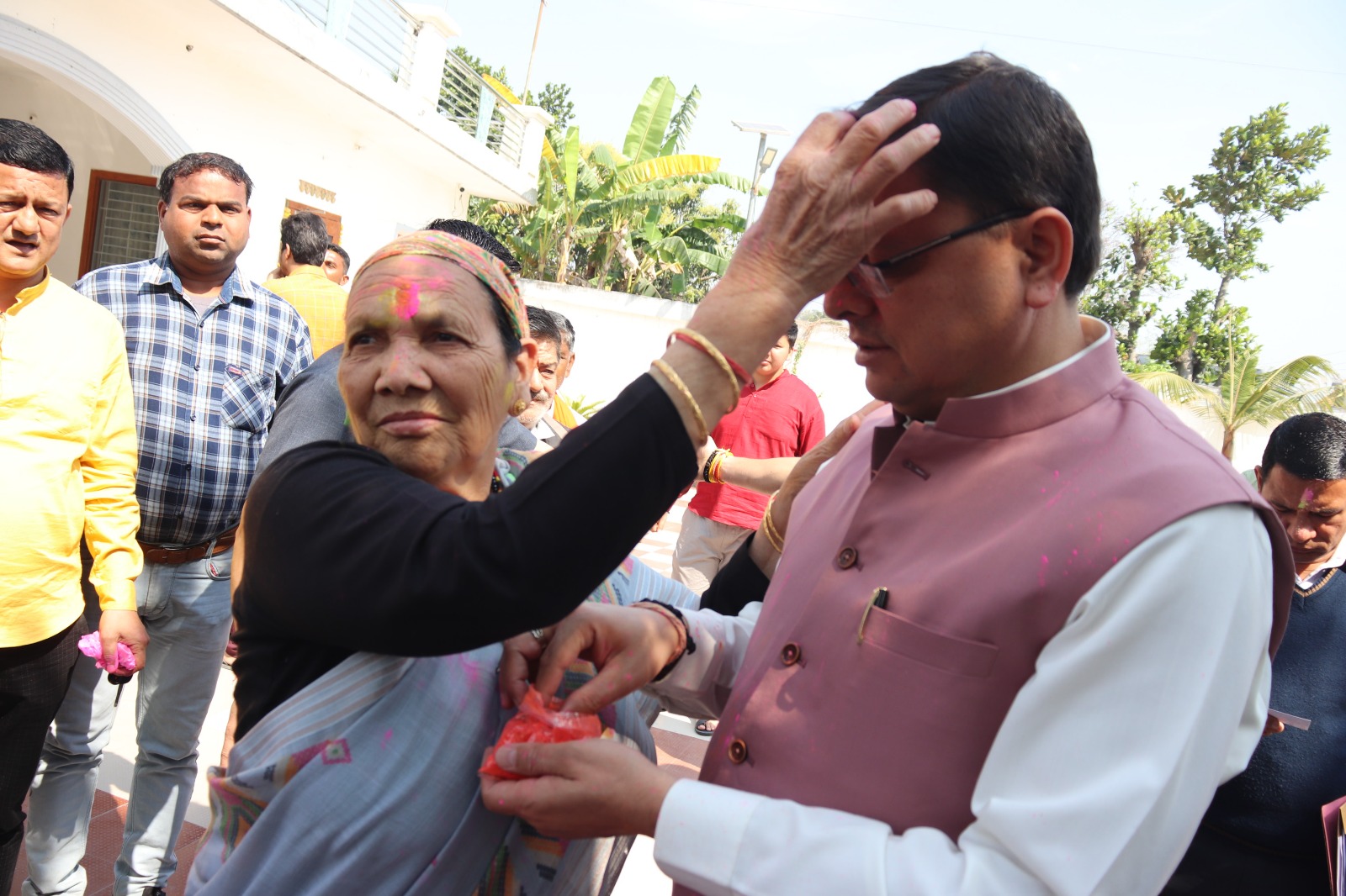 मुख्यमंत्री श्री पुष्कर सिंह धामी ने रविवार को अपने निजी आवास नगला तराई खटीमा पर होली पर्व के अवसर पर अपनी माता जी को गुलाल लगाकर उनका आशीर्वाद लिया। इस दौरान उन्होंने आवास पर पहुंचे लोगो को भी गुलाल लगाकर होली की शुभकामनाएं व बधाई दी।