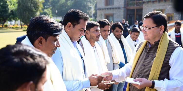 मुख्यमंत्री श्री पुष्कर सिंह धामी ने गुरूवार को मुख्यमंत्री आवास में उत्तरकाशी के सिलक्यारा रेस्क्यू ऑपरेशन में टनल की खुदाई में अहम भूमिका निभाने वाले 12 रैट माइनर्स को शॉल ओढ़ाकर सम्मानित किया और सभी रैट माइनर्स को 5050 हजार रूपये के सम्मान राशि के चेक भी प्रदान किये। मुख्यमंत्री श्री पुष्कर सिंह धामी ने गुरूवार को मुख्यमंत्री आवास में उत्तरकाशी के सिलक्यारा रेस्क्यू ऑपरेशन में टनल की खुदाई में अहम भूमिका निभाने वाले 12 रैट माइनर्स को शॉल ओढ़ाकर सम्मानित किया और सभी रैट माइनर्स को 5050 हजार रूपये के सम्मान राशि के चेक भी प्रदान किये। मुख्यमंत्री श्री पुष्कर सिंह धामी ने कहा कि रैट माइनर्स ने अपनी जान की परवाह किये बिना कठिन परिस्थितयों में टनल में खुदाई, सफाई और पाइप को काटने का कार्य किया। सिलक्यारा रेस्क्यू ऑपरेशन को सफलता तक पहुंचाने में रैट माइनर्स का बहुत बड़ा योगदान रहा। उन्होंने कहा कि जिस लगन और परिश्रम से हमारे रैट माइनर्स ने इस रैस्क्यू अभियान को सफल बनाने में अन्य एजेंसियों के साथ योगदान दिया, इसके लिए सभी रैट माइनर्स बधाई और आशीर्वाद के पात्र हैं। मुख्यमंत्री ने सिलक्यारा रेस्क्यू अभियान में योगदान देने वाले सभी लोगों का भी प्रदेश की जनता की ओर से आभार व्यक्त किया। सिलक्यारा रेस्क्यू ऑपरेशन में महत्वपूर्ण योगदान देने वाले रैट माइनर्स ने राज्य में स्वागत और सम्मान होने पर मुख्यमंत्री श्री पुष्कर सिंह धामी का आभार व्यक्त किया। उन्होंने कहा कि सुरंग में फंसे 41 लोगों की जान बचाने के लिए विभिन्न एजेंसियों के साथ उन्हें भी अपना योगदान देने का अवसर मिला, यह उनके लिए गर्व की बात है। इस अवसर पर अपर मुख्य सचिव श्रीमती राधा रतूड़ी, जिलाधिकारी उत्तरकाशी श्री अभिषेक रूहेला भी मौजूद थे।