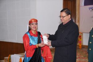 मुख्यमंत्री श्री पुष्कर सिंह धामी ने शुक्रवार को मुख्यमंत्री आवास में इस वर्ष गणतन्त्र दिवस परेड में उत्कृष्ट प्रदर्शन करने एनसीसी कैडेट्स व आरडीसी दल को सम्मानित किया। मुख्यमंत्री श्री धामी ने कैडेट् अंजलि नेगी, कैडेट् प्रिया पाण्डेय, कैडेट् आरती सिंह (घुड़सवारी में कांस्य पदक), कैडेट् यश पाण्डेय (बैण्ड मास्टर), कैडे्ट मनोज सिंह बिष्ट (घुड़सवारी में कांस्य पदक), शिविर के दौरान उत्कृष्ट प्रदर्शन के लिये फलाईग कैडे्ट अविनाश, कैडेट मंयक काला, कैडेट् गिरीश जोशी, कैडेट् तन्वी, कैडे्ट अदिति कौशिक और कैडे्ट प्रियंका पनेरू को सम्मानित किया।