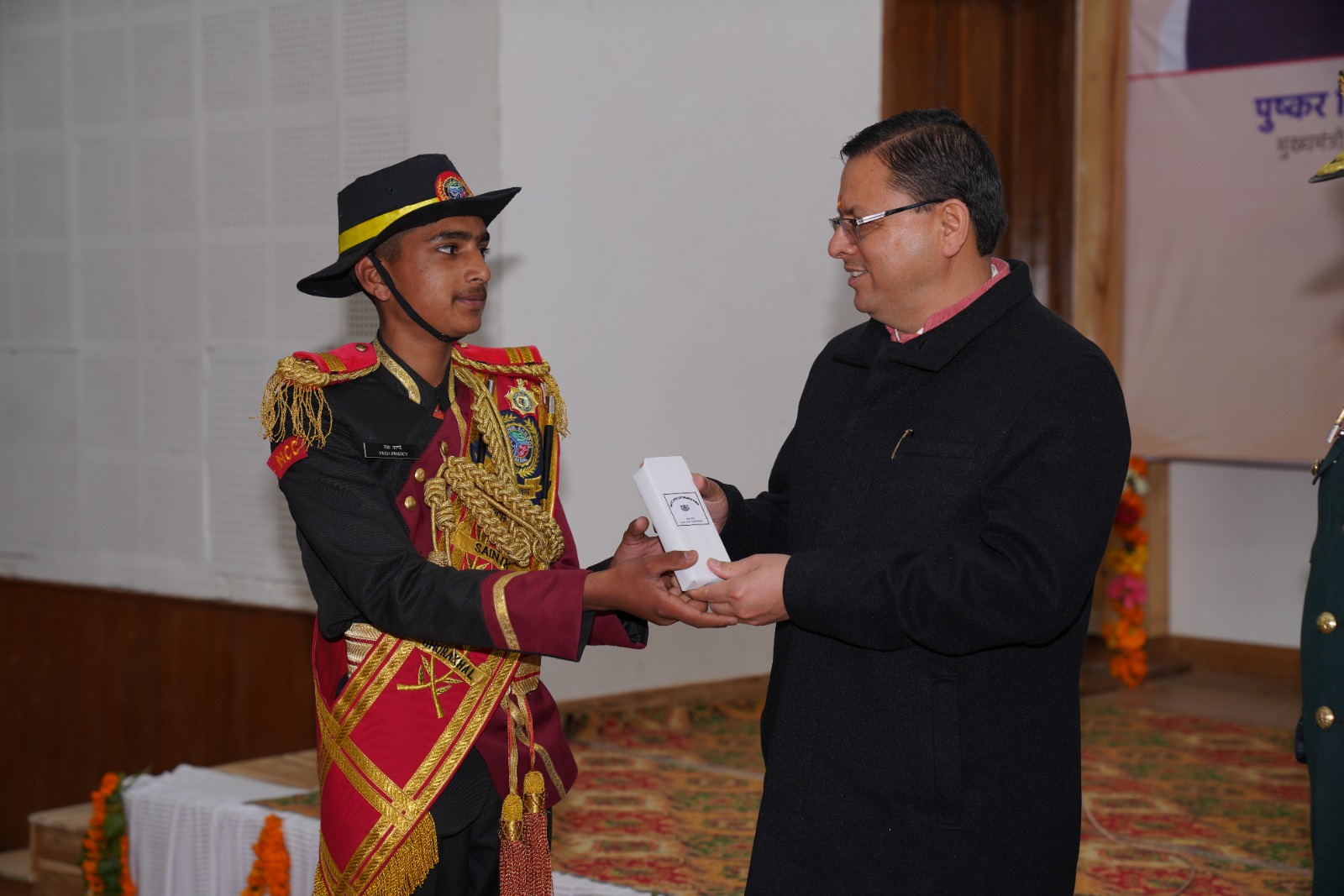 मुख्यमंत्री श्री पुष्कर सिंह धामी ने शुक्रवार को मुख्यमंत्री आवास में इस वर्ष गणतन्त्र दिवस परेड में उत्कृष्ट प्रदर्शन करने एनसीसी कैडेट्स व आरडीसी दल को सम्मानित किया। मुख्यमंत्री श्री धामी ने कैडेट् अंजलि नेगी, कैडेट् प्रिया पाण्डेय, कैडेट् आरती सिंह (घुड़सवारी में कांस्य पदक), कैडेट् यश पाण्डेय (बैण्ड मास्टर), कैडे्ट मनोज सिंह बिष्ट (घुड़सवारी में कांस्य पदक), शिविर के दौरान उत्कृष्ट प्रदर्शन के लिये फलाईग कैडे्ट अविनाश, कैडेट मंयक काला, कैडेट् गिरीश जोशी, कैडेट् तन्वी, कैडे्ट अदिति कौशिक और कैडे्ट प्रियंका पनेरू को सम्मानित किया।