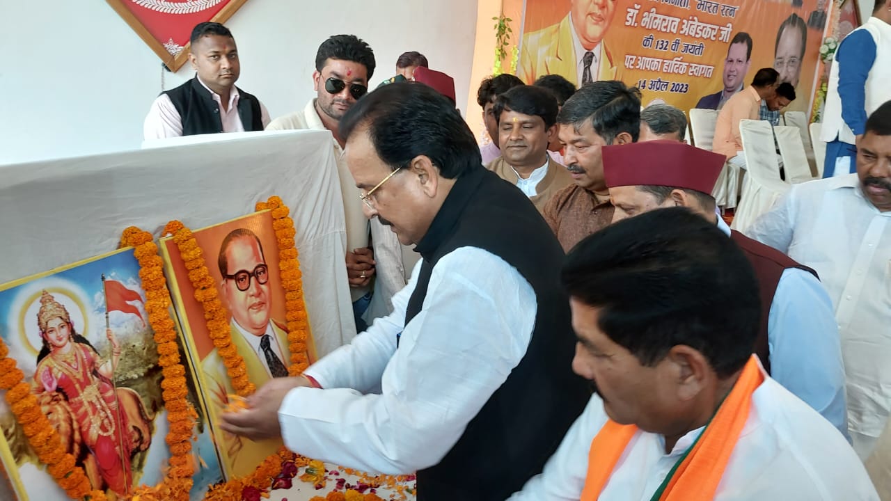 कुसुम खेड़ा नंदा बैंकट हॉल में आज केंद्रीय रक्षा एवं पर्यटन राज्य मंत्री अजय भट्ट ने सविधान के निर्माता भारत रत्न डॉ भीमराव अम्बेडकर की जयंती में आयोजित कार्यक्रम में मुख्य अतिथि के रूप में प्रतिभाग किया। इस दौरान उन्होंने डॉ भीमराव अम्बेडकर के चित्र पर पुष्प गुच्छ अर्पित करे । उन्होंने बताया कि आज पूरा देश उनकी 132 वी जयंती मना रहा है। डॉ भीमराव अंबेडकर ने देश के संविधान का निर्माण किया, और कई किताबें लिखी है, आज प्रधानमंत्री मोदी जी ने उनके नाम को और आगे बढ़ाने का कार्य किया है।