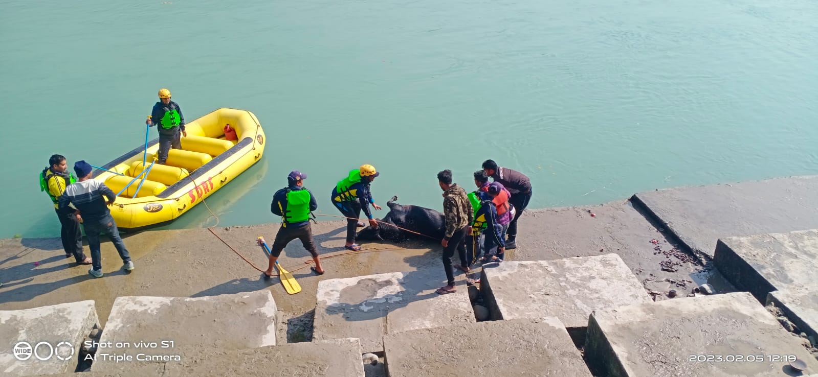 आज दिनाँक 05 फरवरी 2023 को SDRF फ्लड टीम द्वारा पूर्व में निम बीच पांडु पत्थर के पास डुबे युवक की सर्चिंग हेतु ऑपरेशन चलाया जा रहा था, सर्चिंग के दौरान 72 सीढ़ी के पास बहुत लोगों को नदी के पास खड़े देखा गया।