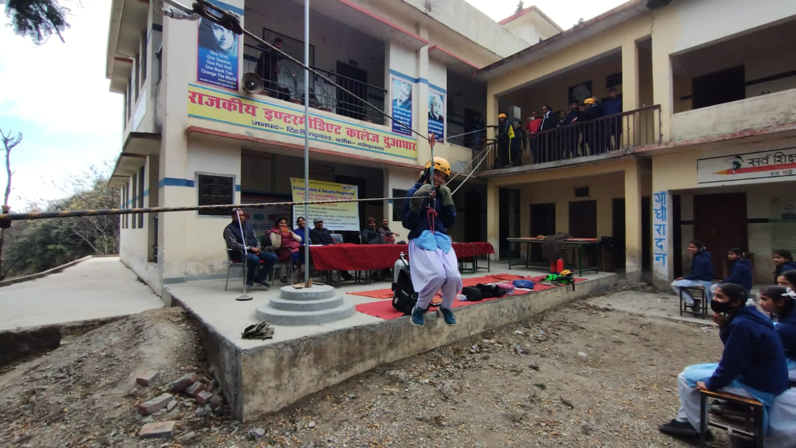 आज दिनांक 22 फरवरी 2023 को एसडीआरएफ टीम ढालवाला द्वारा निरीक्षक कवीन्द्र सजवाण के नेतृत्व में राजकीय इंटर कॉलेज दुआधार नरेंद्र नगर टिहरी गढ़वाल मैं अध्ययनरत सभी विद्यार्थियों एवं अध्यापकों को आपदा प्रबंधन से संबंधित जानकारी दी गई एवं मॉक ड्रिल के माध्यम से भविष्य में आने वाली आपदाओं के संबंध में जागरूक किया गया प्रशिक्षण कार्यक्रम के दौरान टीम द्वारा भूकंप ,बाढ़ ,भूस्खलन के समय होने वाले खतरों की जानकारी दी गई एवं बचाव के तरीके बताए गए इस दौरान टीम द्वारा घायल के उपचार के संबंध में प्राथमिक