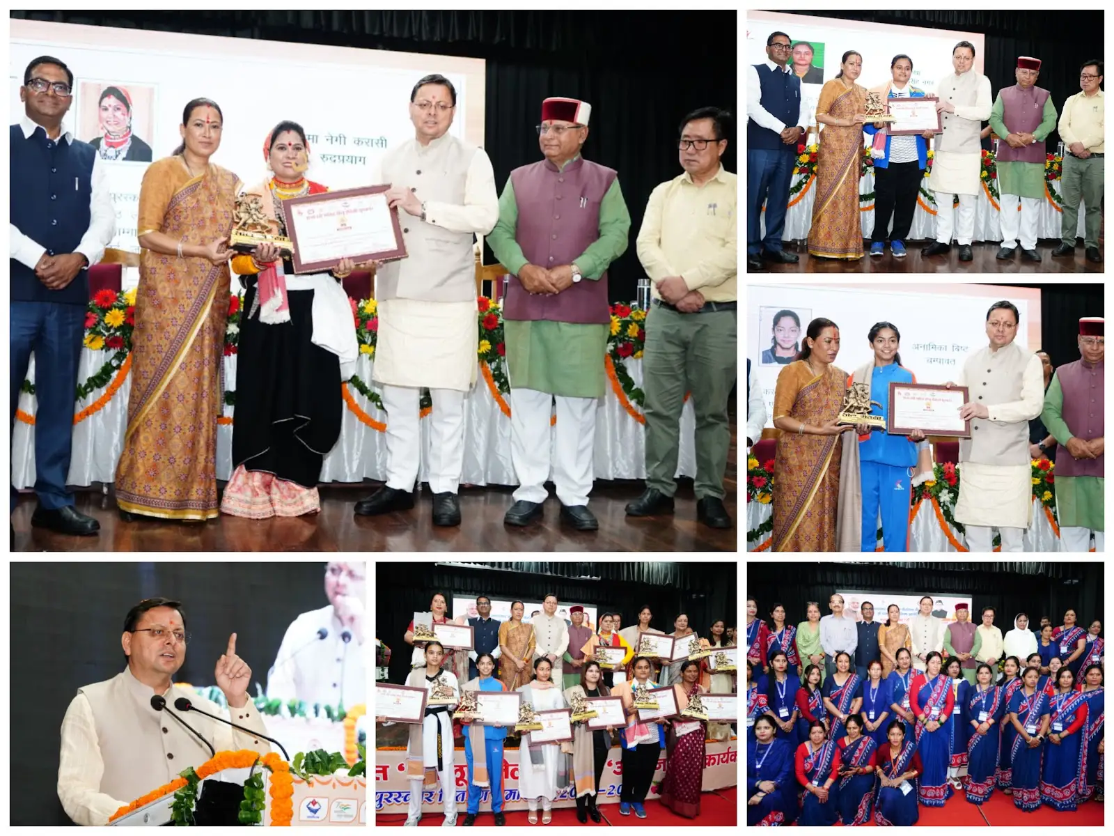 गुरुवार को सर्वे चौक स्थित आईआरडीटी सभागार में आयोजित राज्य स्त्री शक्ति, तीलू रौतेली एवं आंगनवाड़ी कार्यकर्ता पुरस्कार वितरण समारोह में मुख्यमंत्री पुष्कर सिंह धामी ने विभिन्न क्षेत्रों में उल्लेखनीय कार्य करने वाली 13 महिलाओं को तीलू रौतेली पुरस्कार और 33 आंगनवाड़ी कार्यकर्तात्रियों को उनके उत्कृष्ट सेवा कार्य के लिए सम्मानित किया।