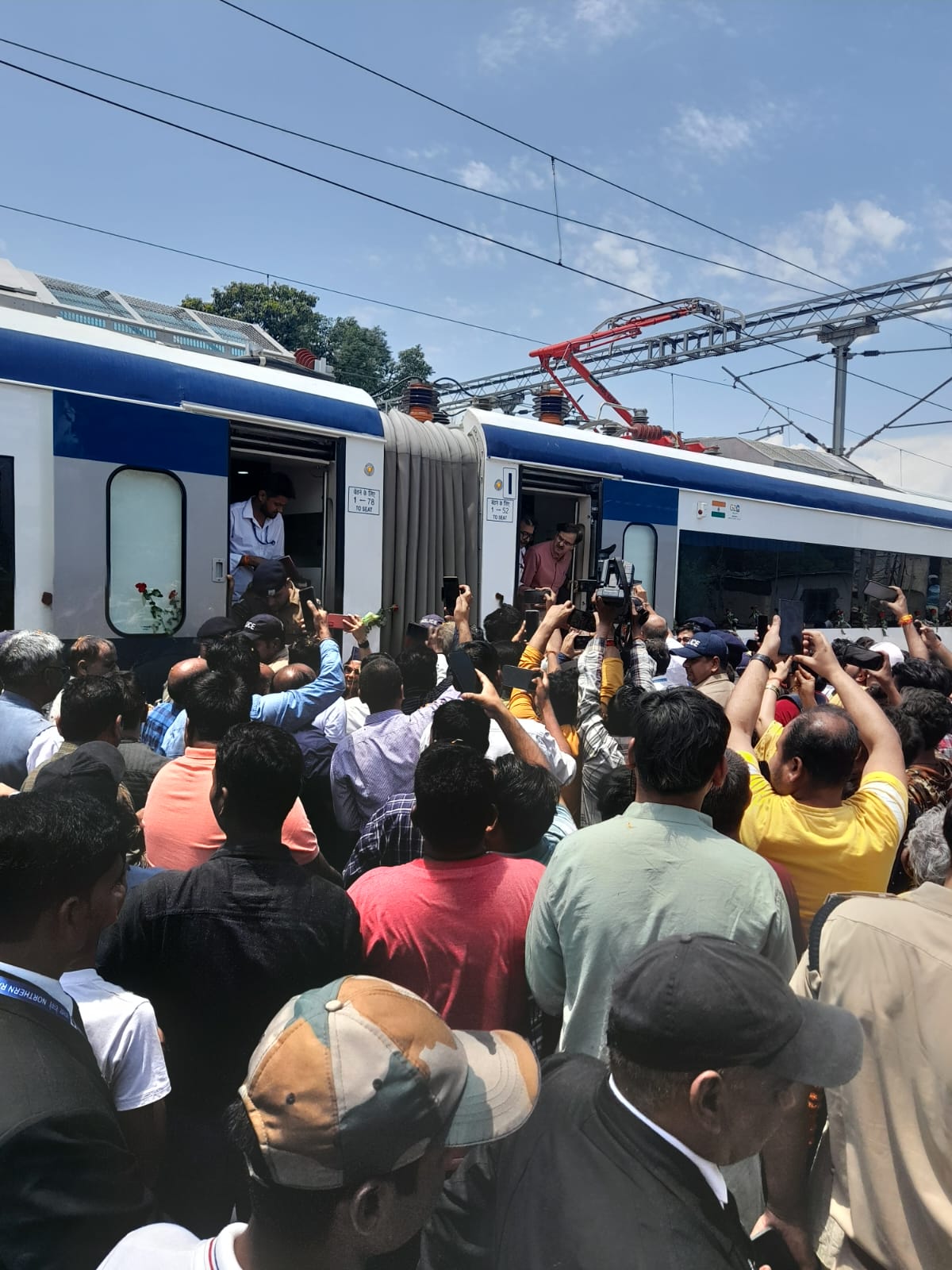 वंदे भारत ट्रेन देहरादून से सुबह 11:40 पर आनंद विहार (दिल्ली) के सफर के लिए रवाना हुई, जो करीब 12:25 पर डोईवाला रेलवे स्टेशन पहुंची। इस ट्रेन में देहरादून से सवार हुए केंद्रीय रेल मंत्री अश्वनी वैष्णव डोईवाला स्टेशन पर उतरे।जहां पूर्व मुख्यमंत्री त्रिवेंद्र रावत, कैबिनेट मंत्री प्रेमचंद अग्रवाल, डोईवाला विधायक बृजभूषण गैरोला समेत सैकड़ों स्थानीय लोगों ने पुष्प वर्षा कर ढोल नगाड़ों के साथ रेल मंत्री और वंदे भारत ट्रेन का भव्य स्वागत किया। इससे पूर्व डोईवाला रेलवे स्टेशन पर कार्यक्रम का आयोजन हुआ, जिसमें स्क्रीन लगाकर प्रधानमंत्री मोदी की उद्बोधन को स्थानीय लोगों ने सुना व देखा।